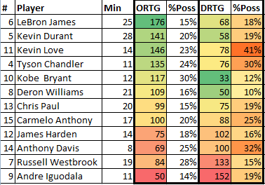 Now, the weighting. In excel, I weight every possession depending on the # of contributing players
